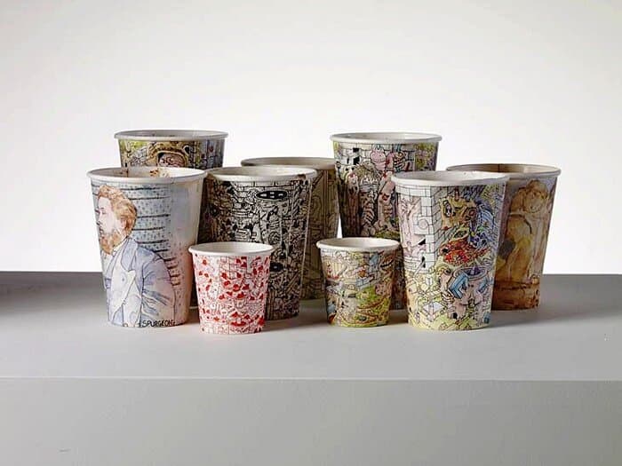 - Пол Весткомб из Великобритании расписывает картонные стаканчики в стиле современного искусства. Граффити, комиксы или росписи студенческих конспектов во время лекции – а что вам напоминают эти картинки?