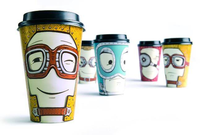 - Ирландская сеть Cavistons и вовсе предложила расписывать свои стаканчики иллюстратору с мировым именем – Стиву Симпсону. Посмотрите, что из этого получилось.